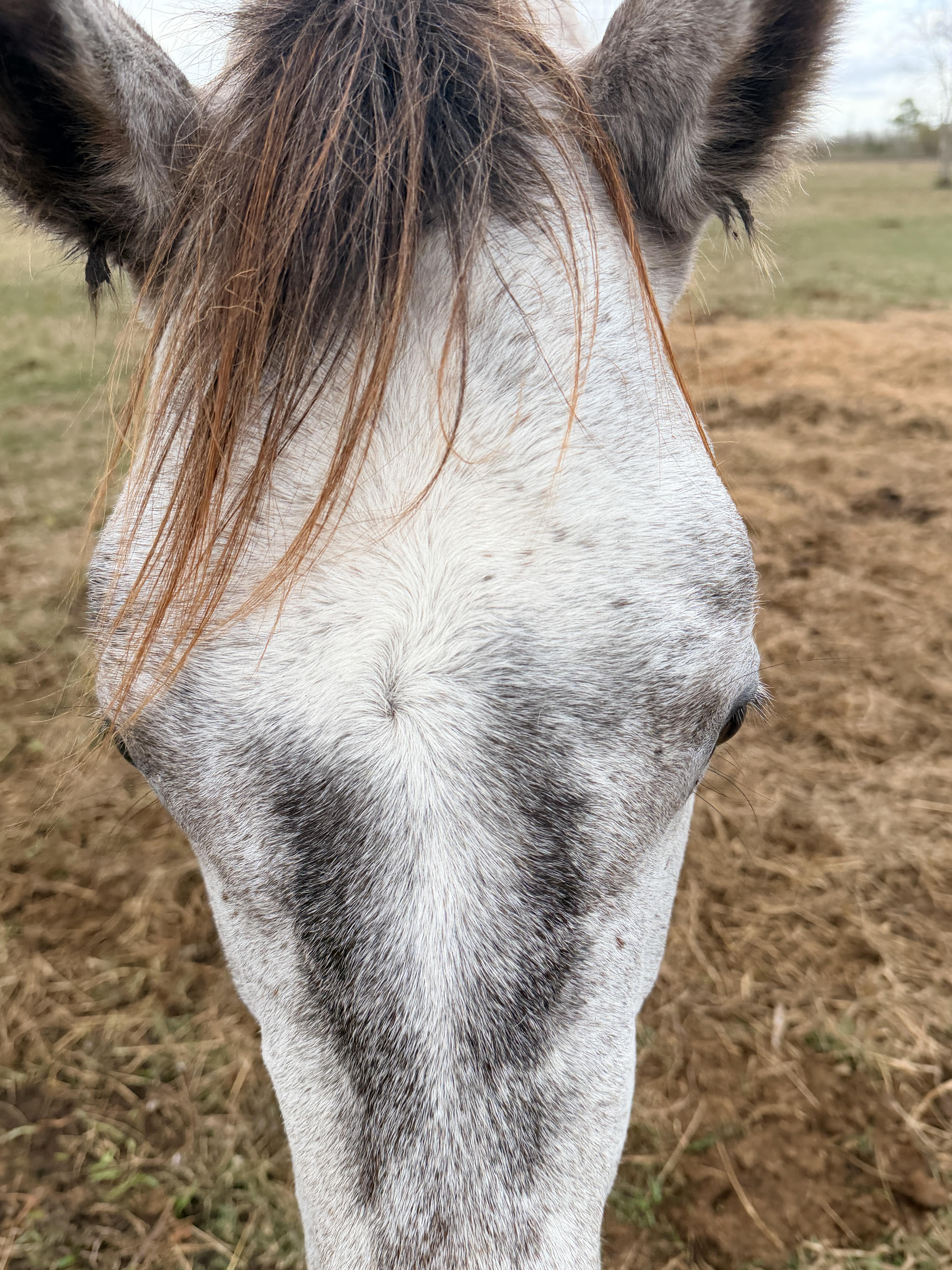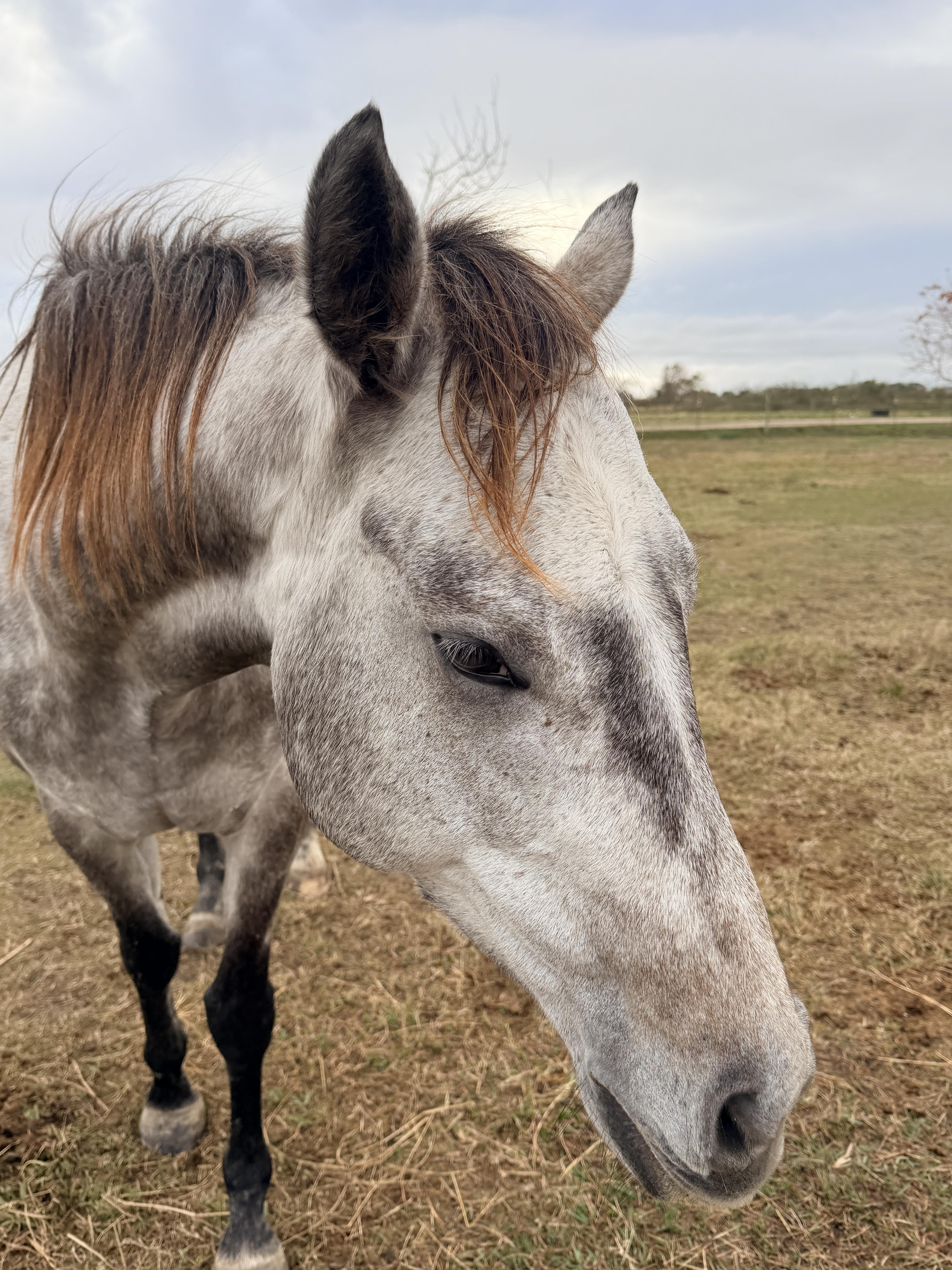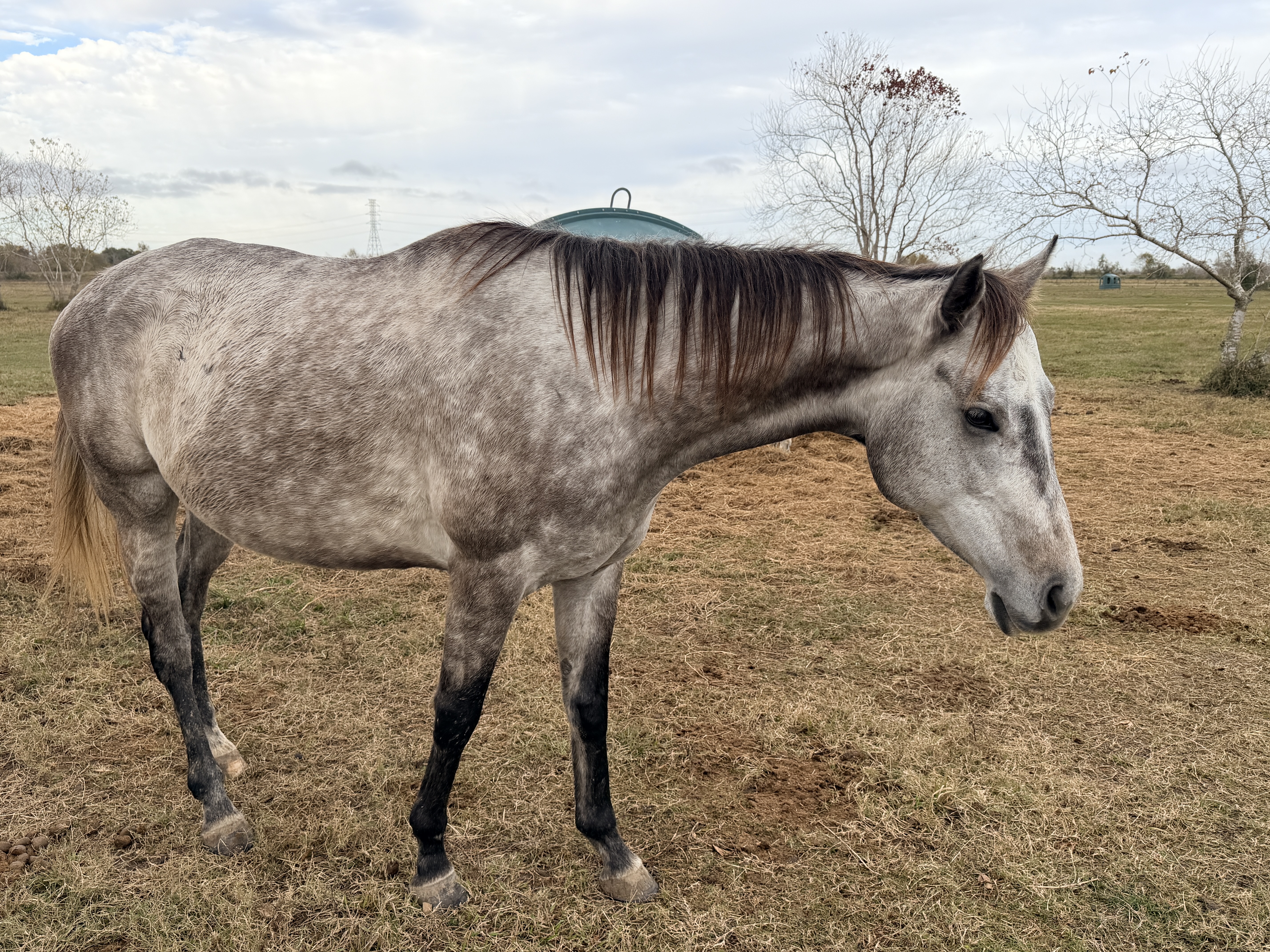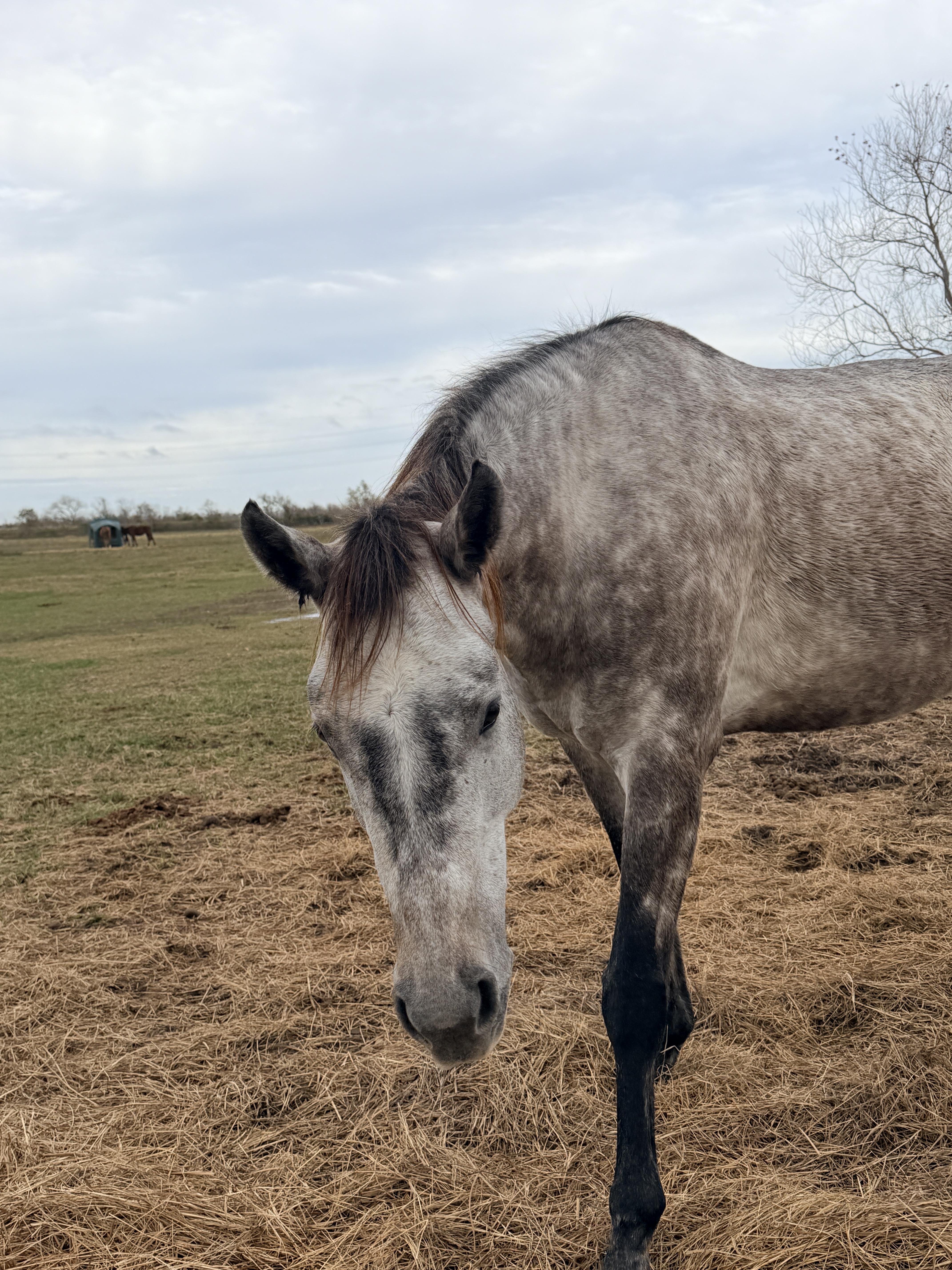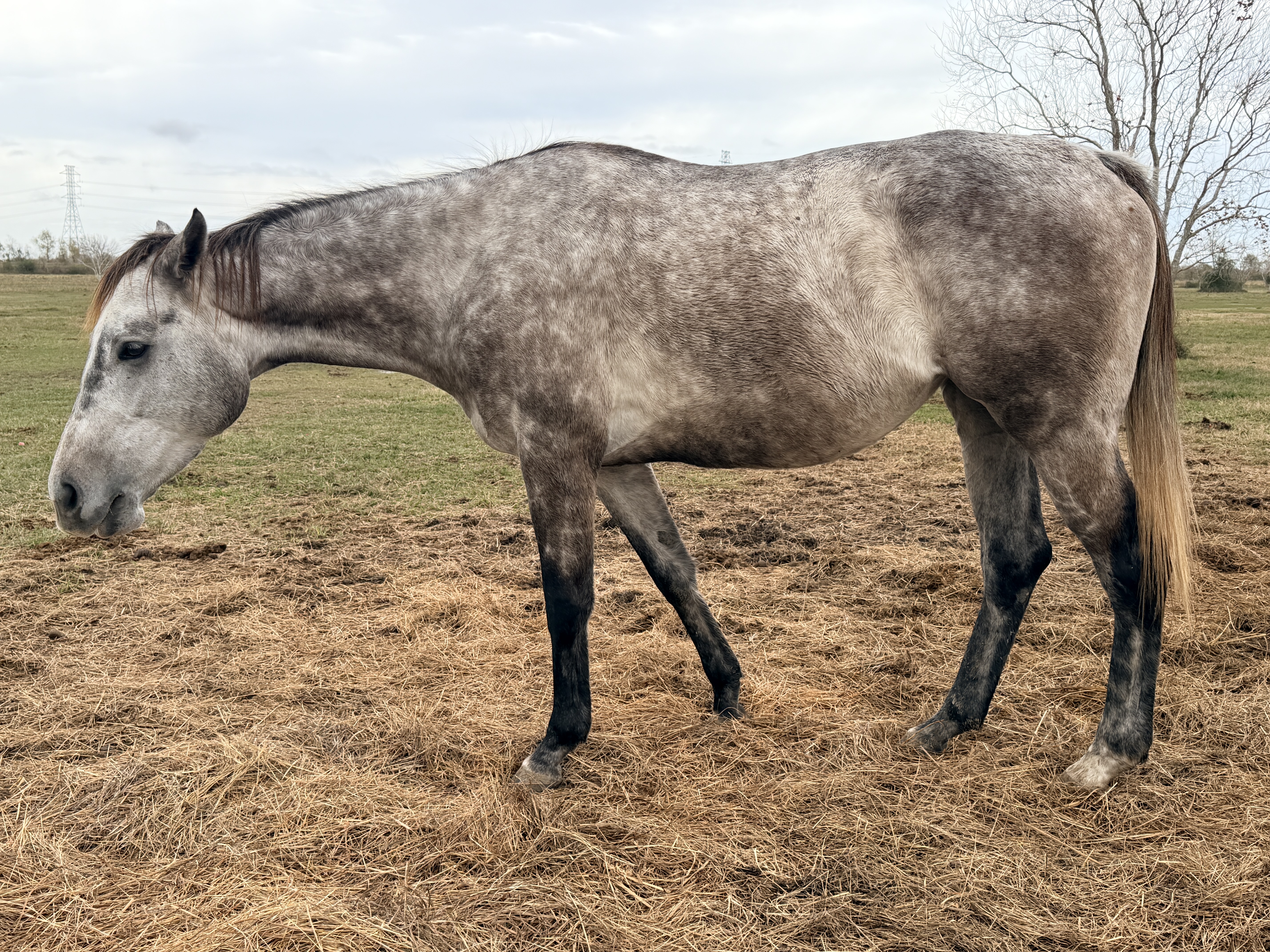 Granite is the sweetest young mare who just wants to cuddle all day! While she does have a workout history on the track, she must have severely injured her hind left fetlock. She is unsound for riding, but would be an amazing companion for humans or horses alike!