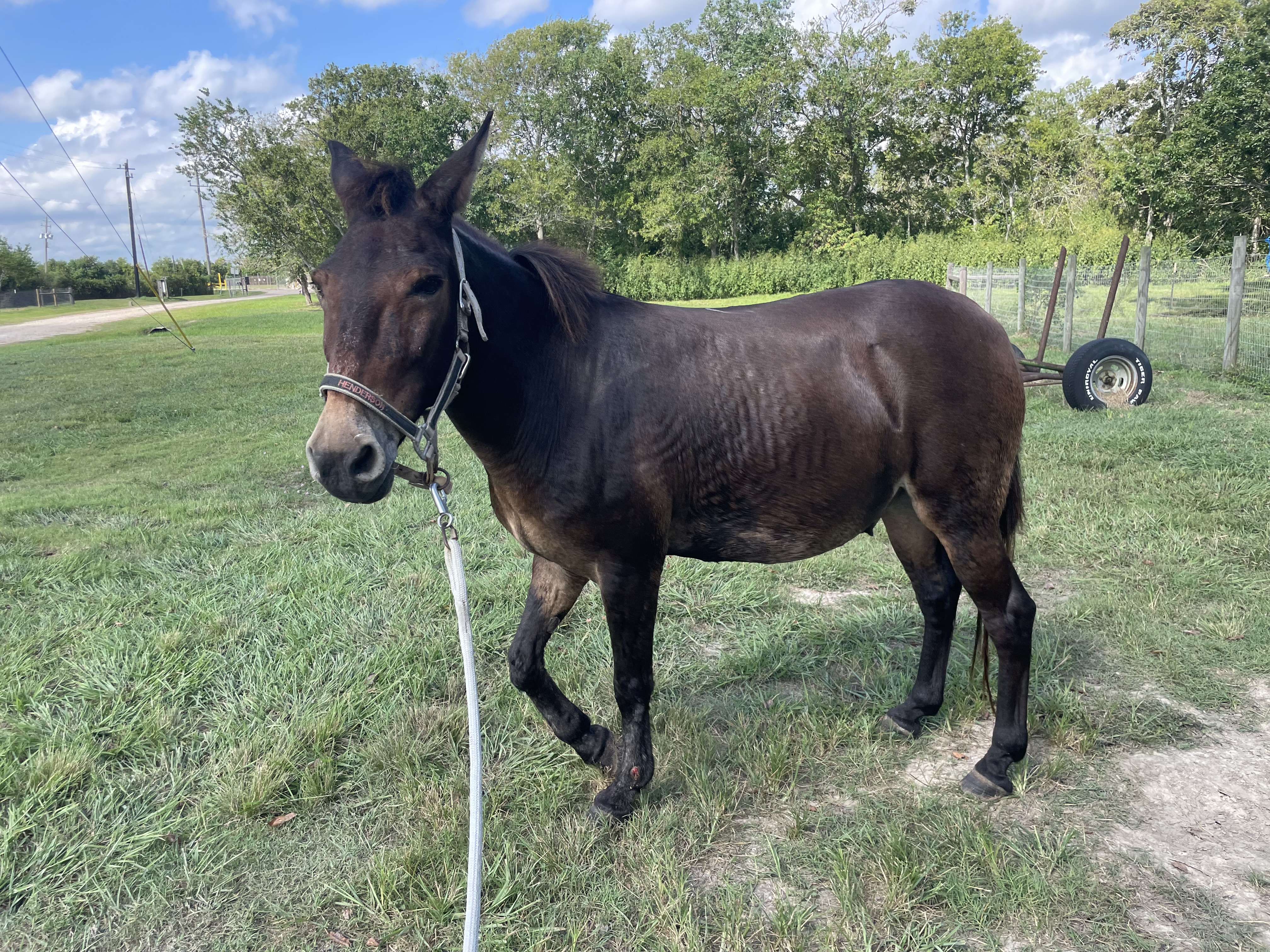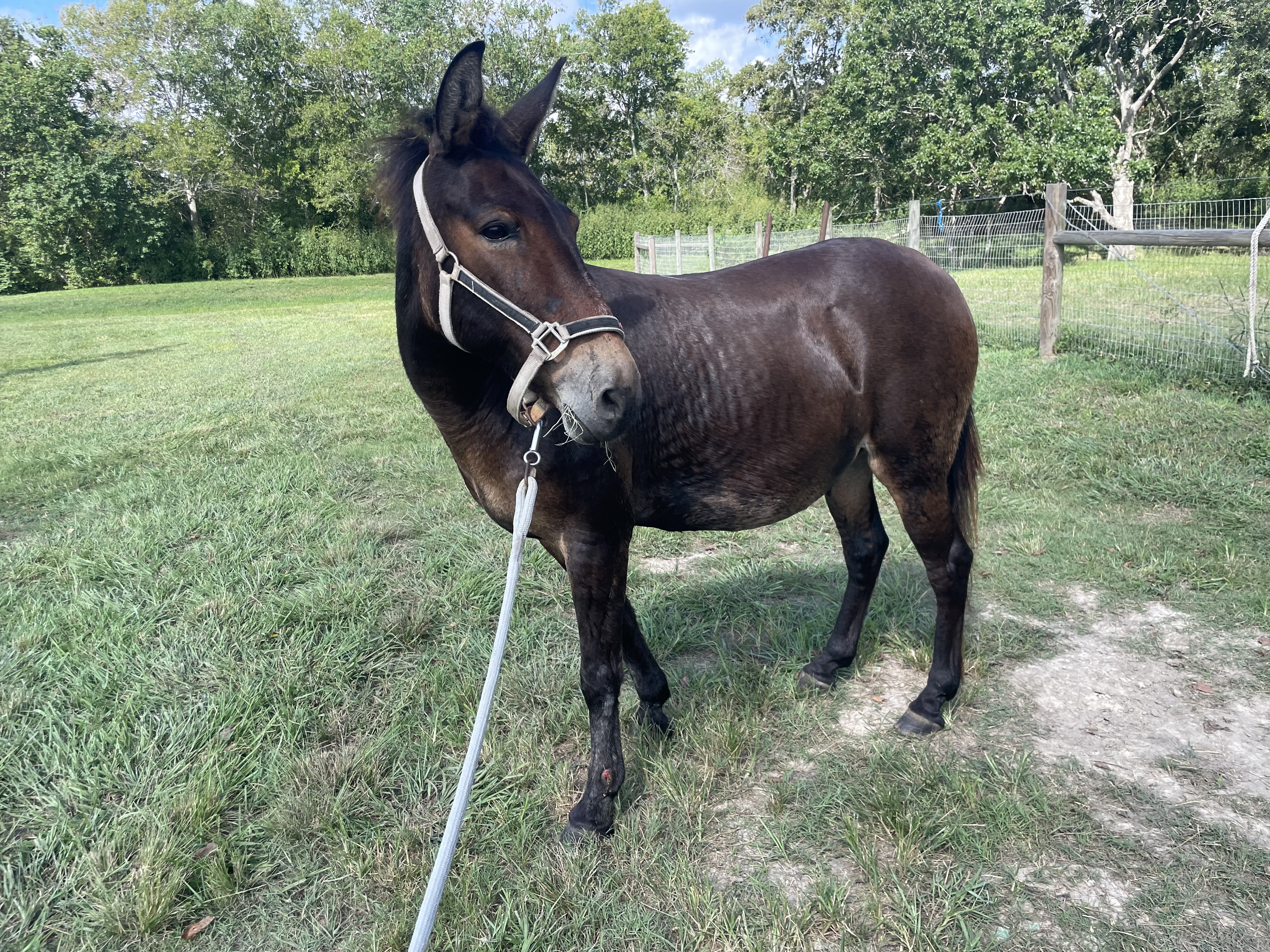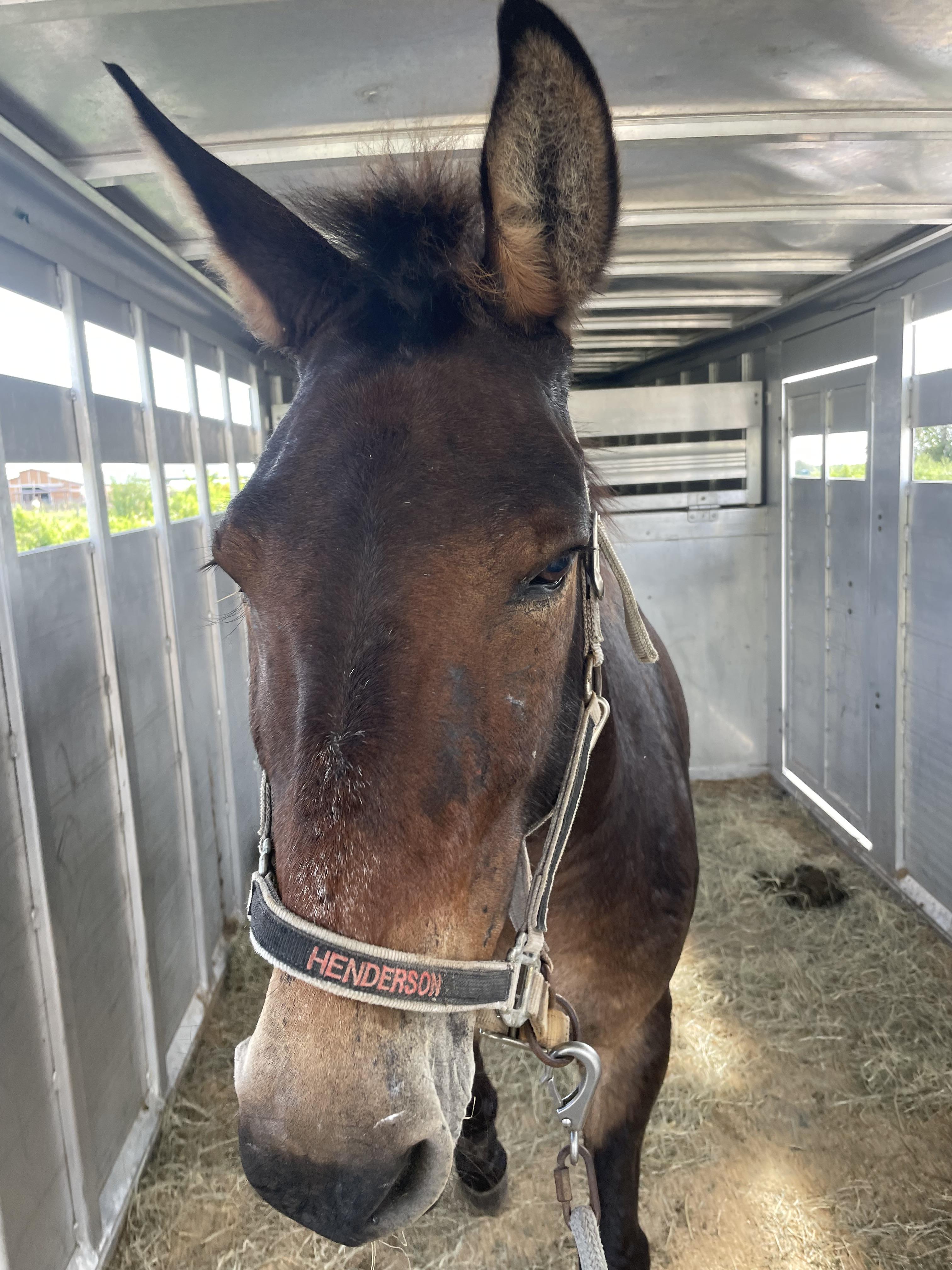Described as smart, sweet, patient, willing, charming, and handsome by one foster, Henderson has recently returned to our ranch in search of a new home. He's been trained to ride in the past, but has had a few years off so will need a refresher. He's social with people and other animals alike and walks very well on halter. He has been known to escape his pastures on occasion when bored or kept alone, so keeping this smart guy busy or with equine friends will be important in his new home. Sound like your kind of mule? Come meet him today!
