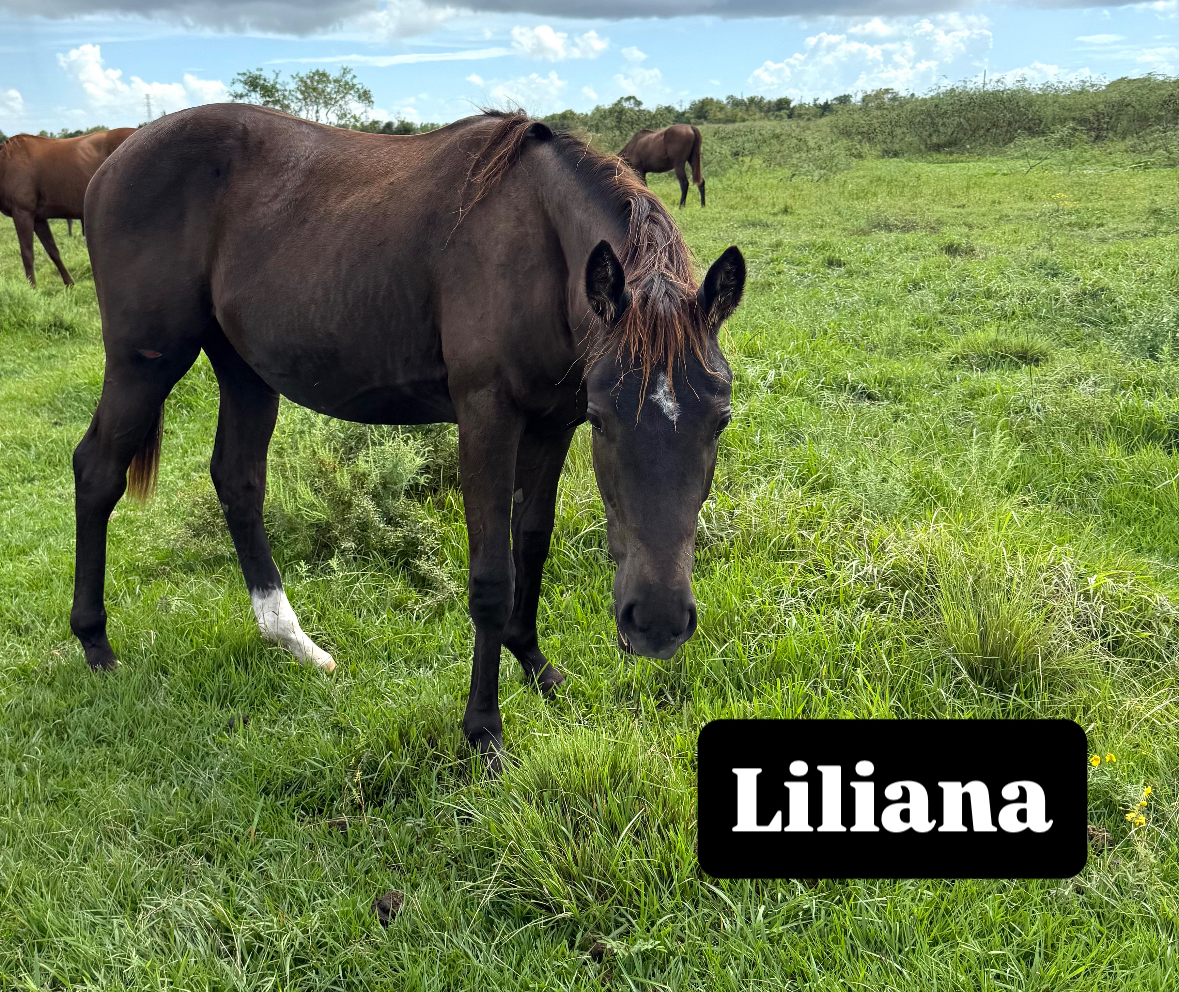 Lilianah had a rough start when she was rescued. She had about a 2-foot wound across her ribcage to her hip/stifle area. Luckily, the vet was able to stitch her up, and after diligently treating her for months - you would barely be able to tell! She has had a lot of handling and gets her feet done regularly.