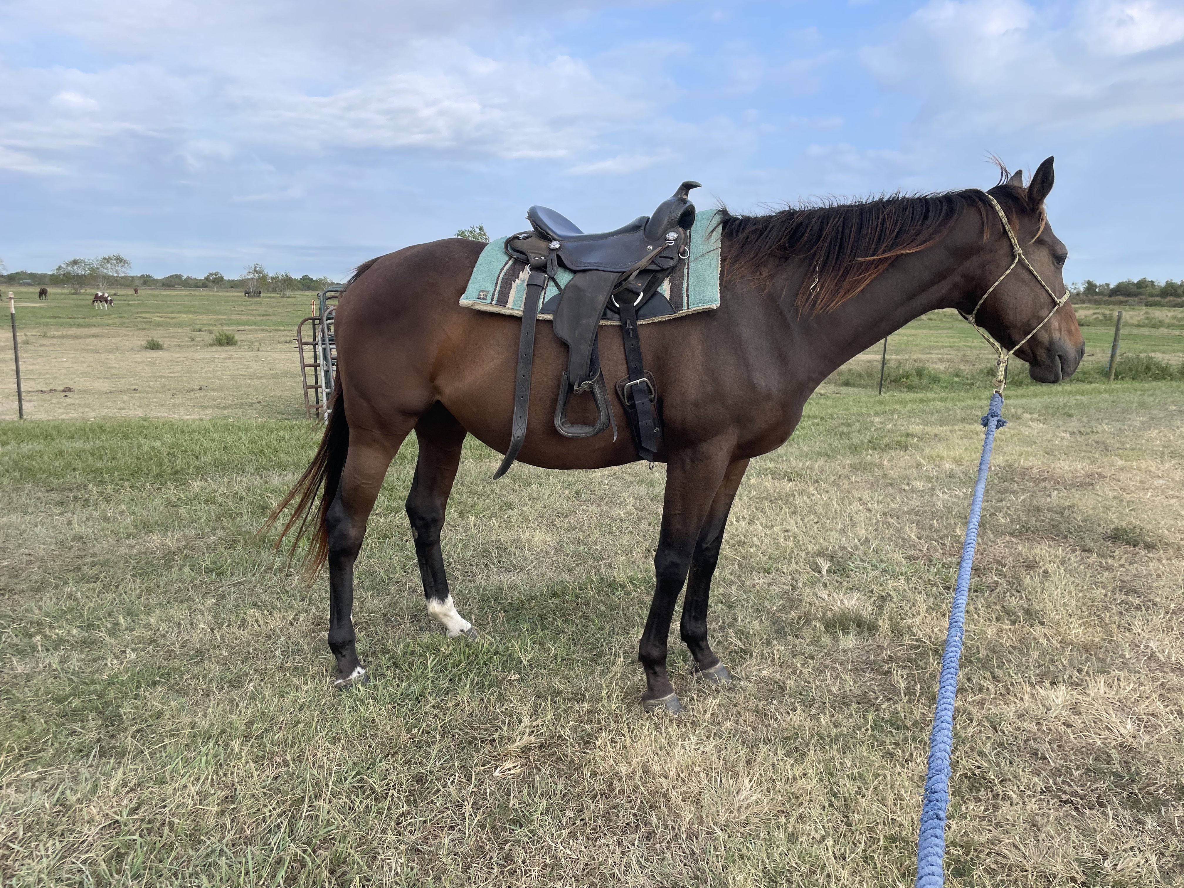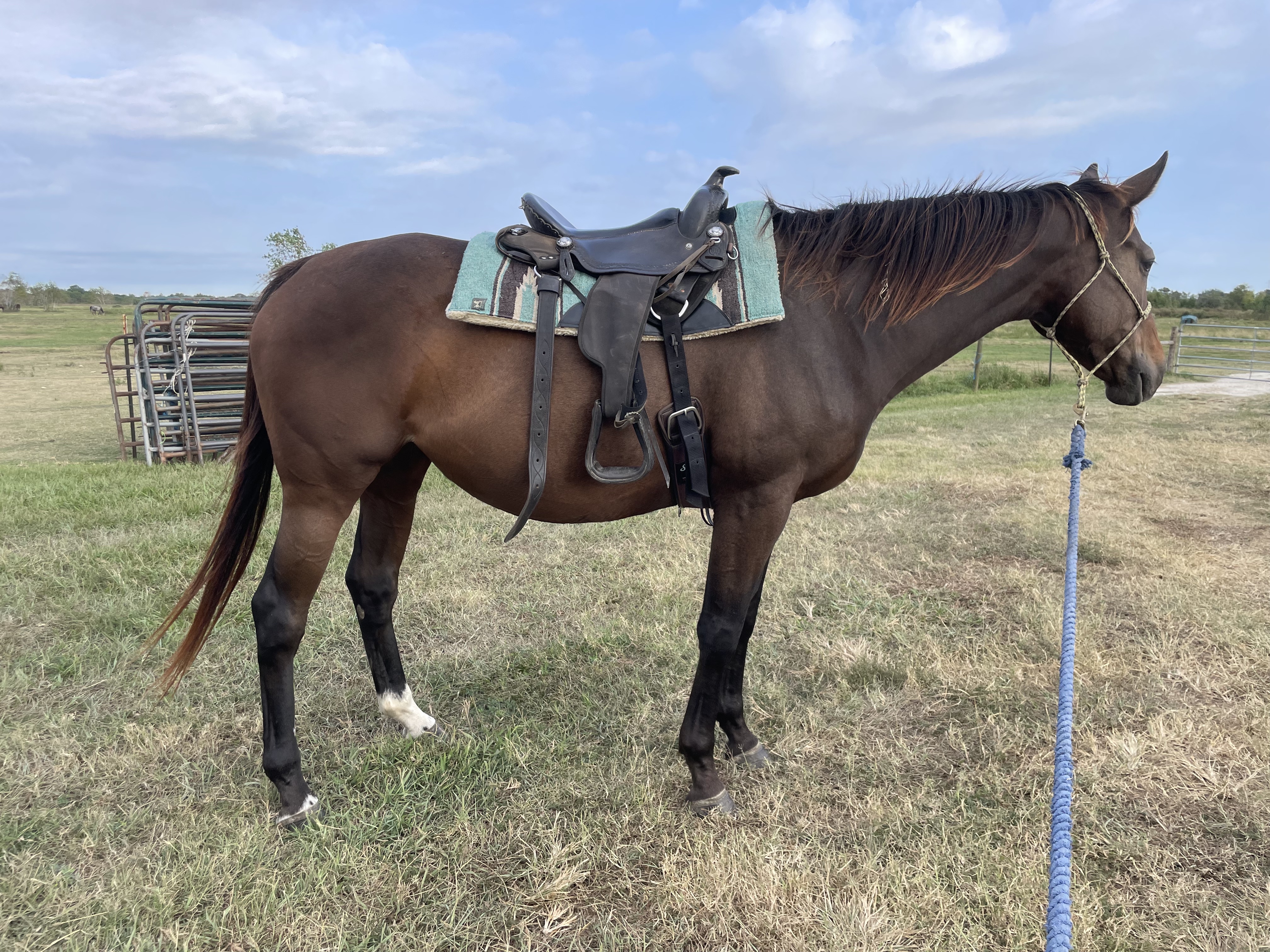 Moana is a lovely mare that is big-bodied for her height. She thrives when she understands what is expected of her, and we know she’s ready to start her second career! She knows how to lunge and is comfortable wearing tack.