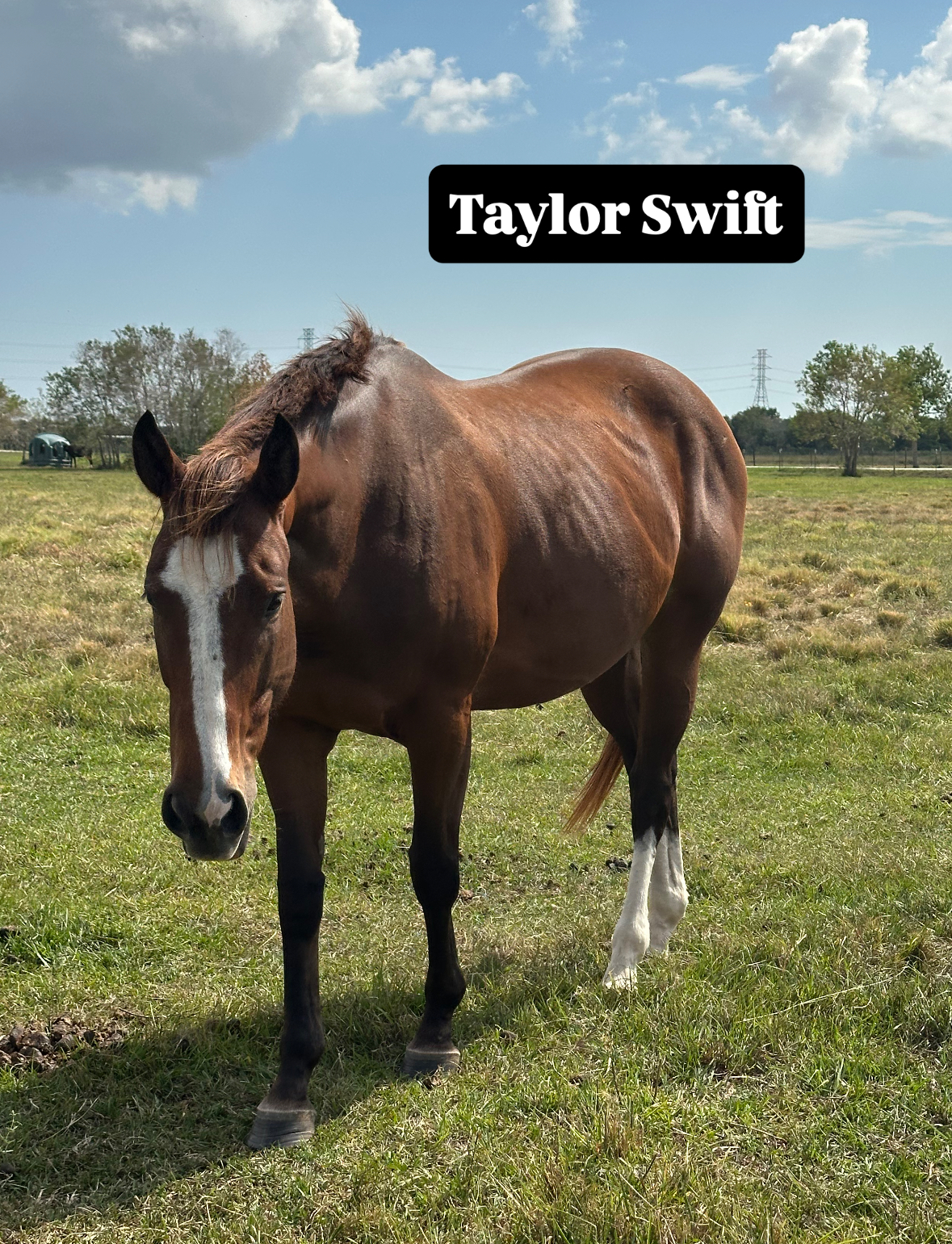 T. Swift is an eye-catching bay mare that is unraced before becoming a broodmare. She has a wonderful personality and enjoys hanging out with people on the ground. She is young, sound, and ready for a second career with no known limitations.