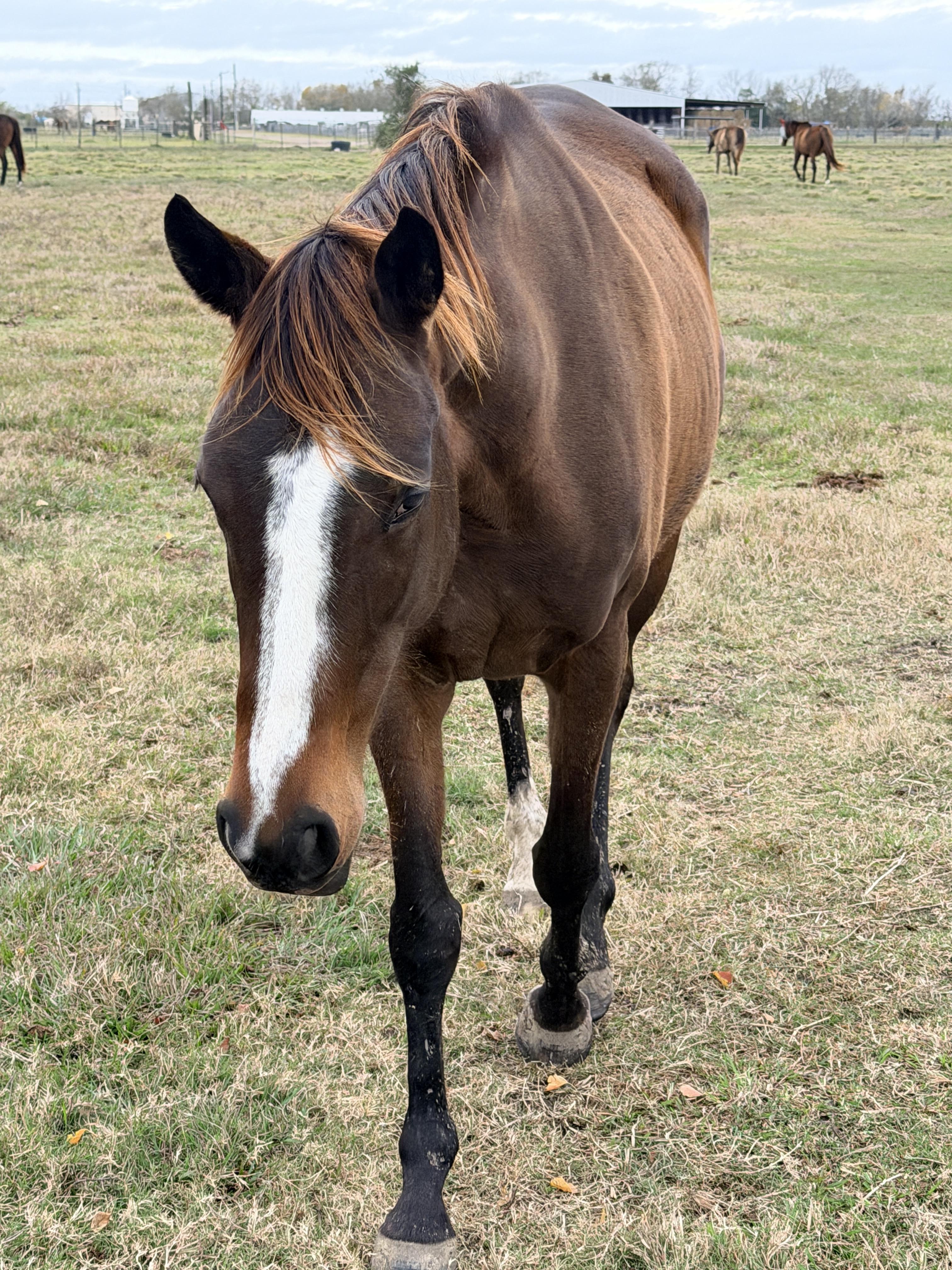 Valerie is a sweet, kind young mare that had a short race record of 6 starts prior to being sold as a broodmare prospect. She has wonderful ground manners, lunges, and accepts tack willingly. She is sound and ready to start her second career!